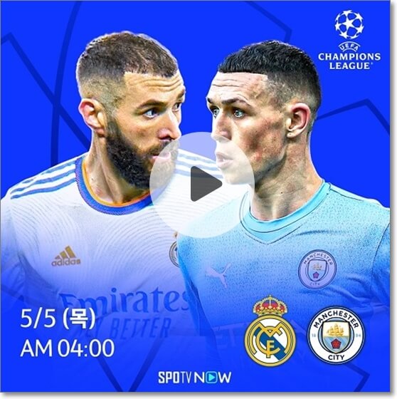 챔피언스리그 4강 맨시티 레알마드리드 실시간 중계 시청방법 안내(+spotvnow) 맨시티 레알마드리드 4강 2차전 경기 2021-22 챔피언스리그 4강 두번째경기인 맨시티와 레알마드리드의 4강 2차전