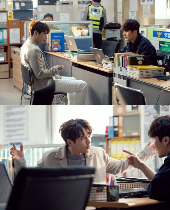 천사 단은 장난기가 많고 사랑스럽지만 온갖 사고를 몰고 다니는데요. 인간의 생명에 관여하면 안 된다는 천계의 룰을 어긴 채 죽을 뻔한 이연서를 살립니다. 대형사고를 친 단은 소멸 위기에서 이연서의 사랑을 찾아주라는 마지막 기회를 부여받고 특별 임무를 수행하는데요. 경찰에게 연행된 단의 모습이 나옵니다.