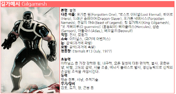 마블에 출연하는 마동석의 모습을 보고 싶어지는데요. 길가메시가 원작 캐릭터의 외모 싱크로율도 마동석과 높다고 합니다.