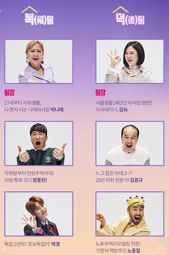 출연진은 박나래 김숙 장동민 김광규 박경 노홍철이며 복팀과 덕팀으로 나눠 대결을 하는데요.